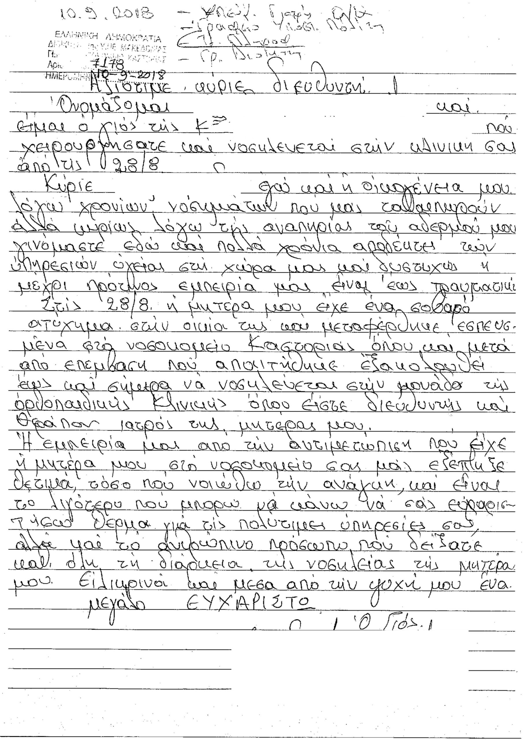 Ευχαριστήριο 1ο Ευχαριστήριο 2ο Ευχαριστήριο 3ο Για να προστατεύσουμε το ιατρικό απόρρητο και τα προσωπικά δεδομένα των εμπλεκόμενων, έχουν διαγραφεί όλα τα στοιχεία ταυτοποίησης.